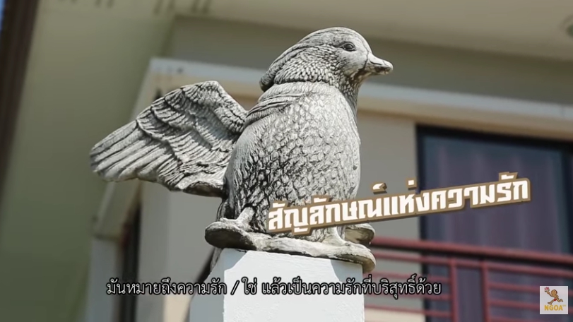 1.เป็ดแมนดาริน ซึ่งประดับบริเวณรั้วบ้านของเอ ไชยา มิตรชัยนั้นเป็นสัญลักษณ์ที่เจ้าของบ้านตั้งใจจัดวางไว้เพราะเป็ดแมนดารินเป็นสัญลักษณ์ของความรักแท้ เนื่องจากเป็ดแมนดารินเป็นสัตว์ที่จะจับคู่เพียงตัวเดียวไปตลอดชีวิต นอกจากนี้ตามความเชื่อของชาวจีนเป็ดแมนดารินยังเป็นสัตว์แห่งความเป็นสิริมงคล