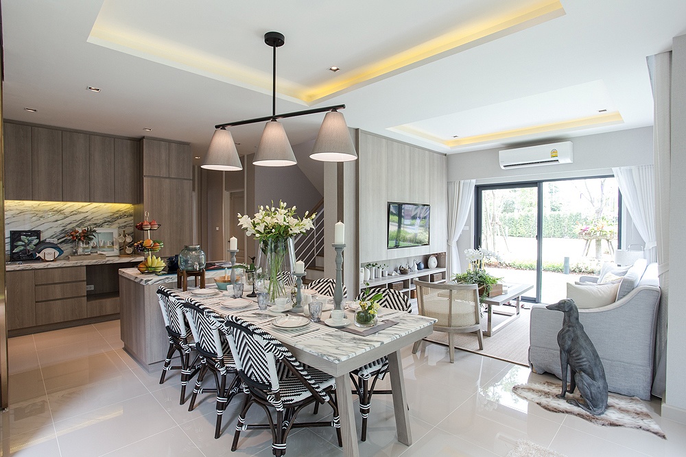 ผสมผสานงานดีไซน์อันหลากหลายการตกแต่งโซนรับประทานอาหารให้มีจุดสมดุลระหว่างสรีรศาสตร์กับความงามให้ลงตัวนั้นอาจไม่ใช่เรื่องง่าย เพราะหลายครั้งที่เก้าอี้ดีไซน์สวยมากมาย แต่อาจไม่ได้ช่วยให้นั่งสบายเสมอไป ซึ่งในบางครั้งอาจลองคุมโทนการตกแต่งบ้านด้วยการผสมผสานเฟอร์นิเจอร์ดีไซน์อื่นๆ เข้าด้วยกัน ก็ช่วยให้การตกแต่งบ้านในบริเวณนี้ง่ายมากยิ่งขึ้น เช่น หากเป็นบ้านโบราณที่มีความเก่าแก่ อาจเพิ่มความร่วมสมัยด้วยเก้าอี้ที่มีความโมเดิร์นมากขึ้น หรือหากเป็นห้องคอนโดที่มีทั้งความเรียบหรูและความทันสมัยไปพร้อมกัน ก็อาจผสมผสานงานดีไซน์ร่วมสมัยที่มีกลิ่นอายวินเทจเข้าด้วยกัน ก็จะช่วยให้พื้นที่รับประทานอาหารดูอบอุ่นและลงตัวมากกว่าเดิมห้องรับประทานอาหารแบบห้องรับประทานอาหารตกแต่งห้องรับประทานอาหาร