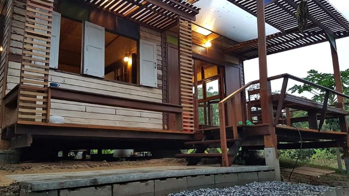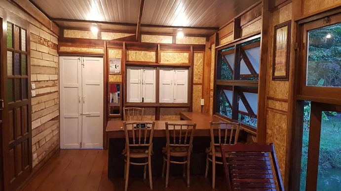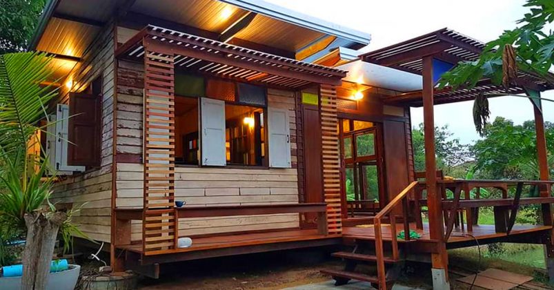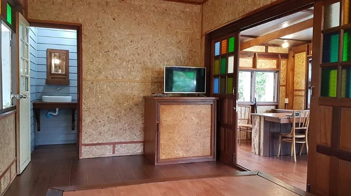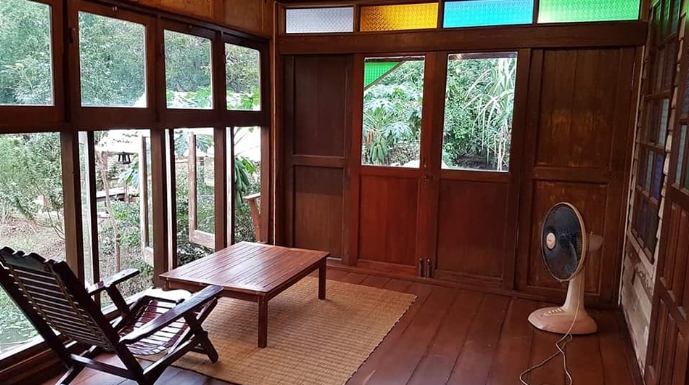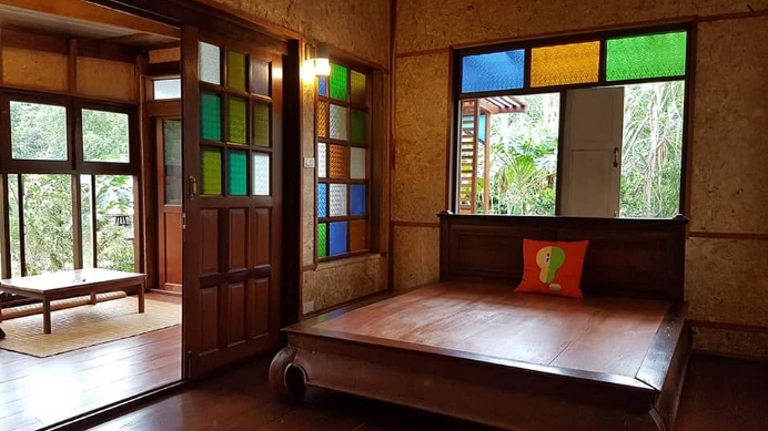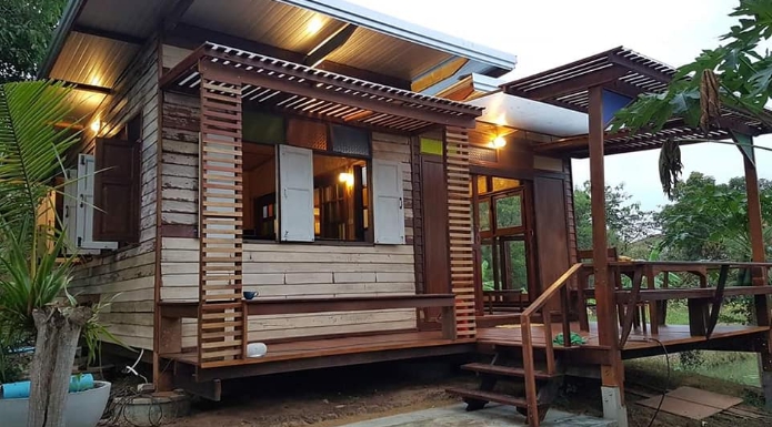 บ้านไม้สักหลังเล็ก ตกแต่งด้วยกระจกสี ดีไซน์เก๋ 1 ห้องนอน 1 ห้องน้ำ ในบรรยากาศสไตล์รีสอร์ท