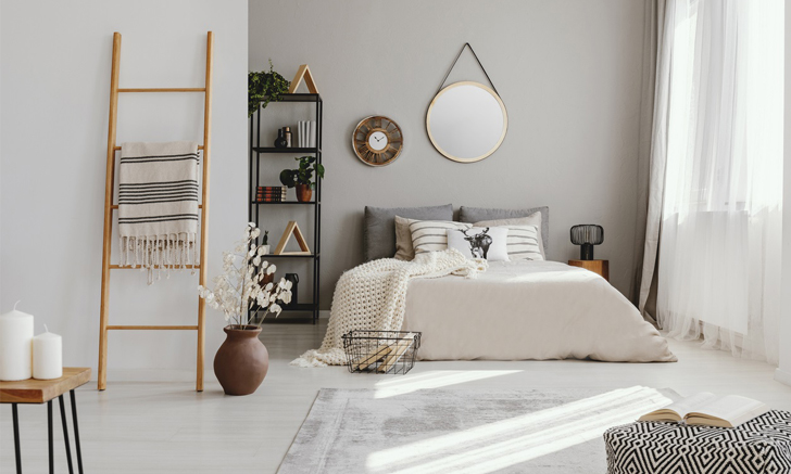 การจัดห้องนอนนั้นเรื่องของความสมดุลเป็นสิ่งที่ควรให้ความสำคัญและมันก็มีผลกับเรื่องของความรู้สึก แต่ก็ใช่ว่าห้องนอนทุกห้องจะมีพื้นที่สำหรับตั้งโต๊ะข้างเตียงเสมอไป แต่ถ้ามีคุณควรมีที่ตั้งสำหรับโต๊ะข้างเตียงทั้ง 2 ฝั่ง เพราะมันสะท้อนถึงความสัมพันธ์ที่สอดคล้องกัน