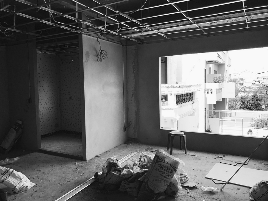 หลังจากเราได้แบบและไอเดียในการตกแต่งแล้ว เรามาเริ่มการก่อสร้างจริงกันครับ การก่อสร้างจริงนั้นผมเริ่มต้นจากการทุบและรื้อผนังเดิมออกเหลือไว้แต่ส่วนที่เราต้องการ