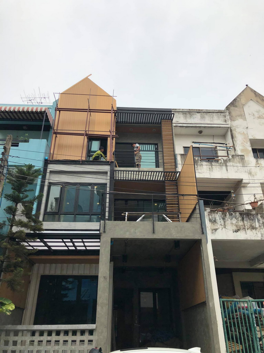 ชั้น 2 ตกแต่งผนังส่วนต่างๆ วัสดุตกแต่งยังคงใช้ Concept เดิมคือ อิฐ ไม้ ปูน ส่วนภายนอกผมเลือกใช้ไม้เทียมในการตกแต่งจะมีความทนทานและดูและง่ายครับ