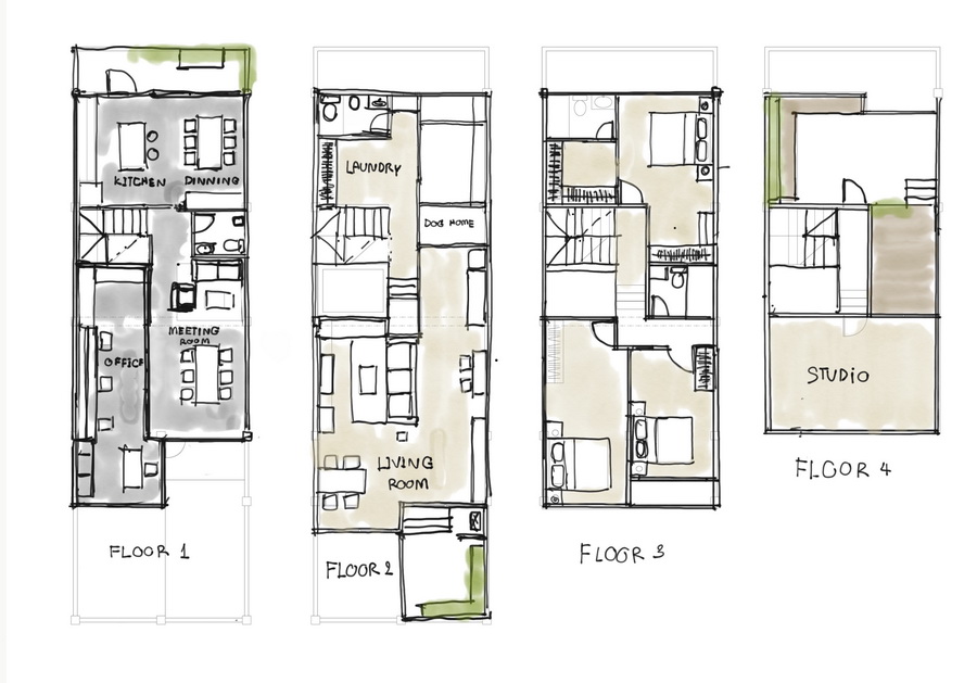 สารภาพตามตรงว่าตอนดูจากสภาพบ้านผมคิดไม่ออกจริงๆว่าเราจะกำหนดฟังก์ชั่นและแบ่งพื้นที่อย่างไรดี…….. จึงลองคิดนอกกรอบดูลองปรับฟังก์ชั่นเดิมทั้งหมดใหม่วาดแปลนให้มีแต่เฉพาะโครงสร้างและแบ่งสัดส่วนใหม่หมดเลยครับคิดซะว่าแต่ละชั้นมีพื้นที่โล่งๆ ก็เริ่มมีไอเดียที่จะกำหนดฟังก์ชั่นต่างๆได้ง่ายขึ้น ผมประเมินจากการใช้ชีวิตและ life style ของเรา 2 คน จึงกำหนดฟังก์ชั่นประมาณนี้ครับ