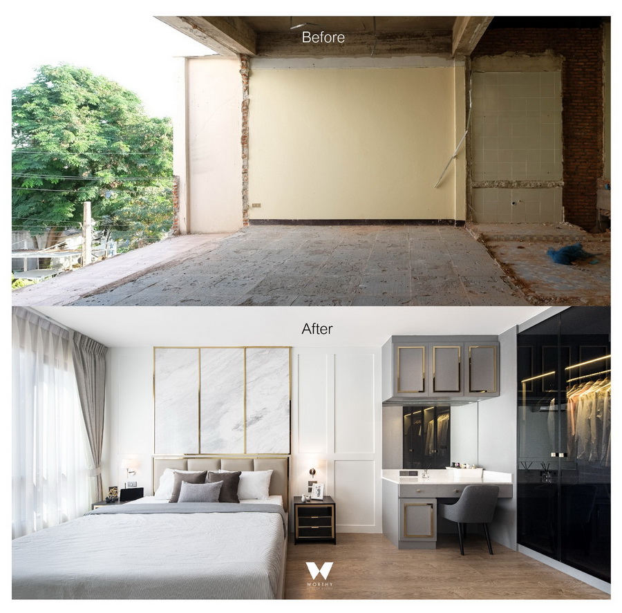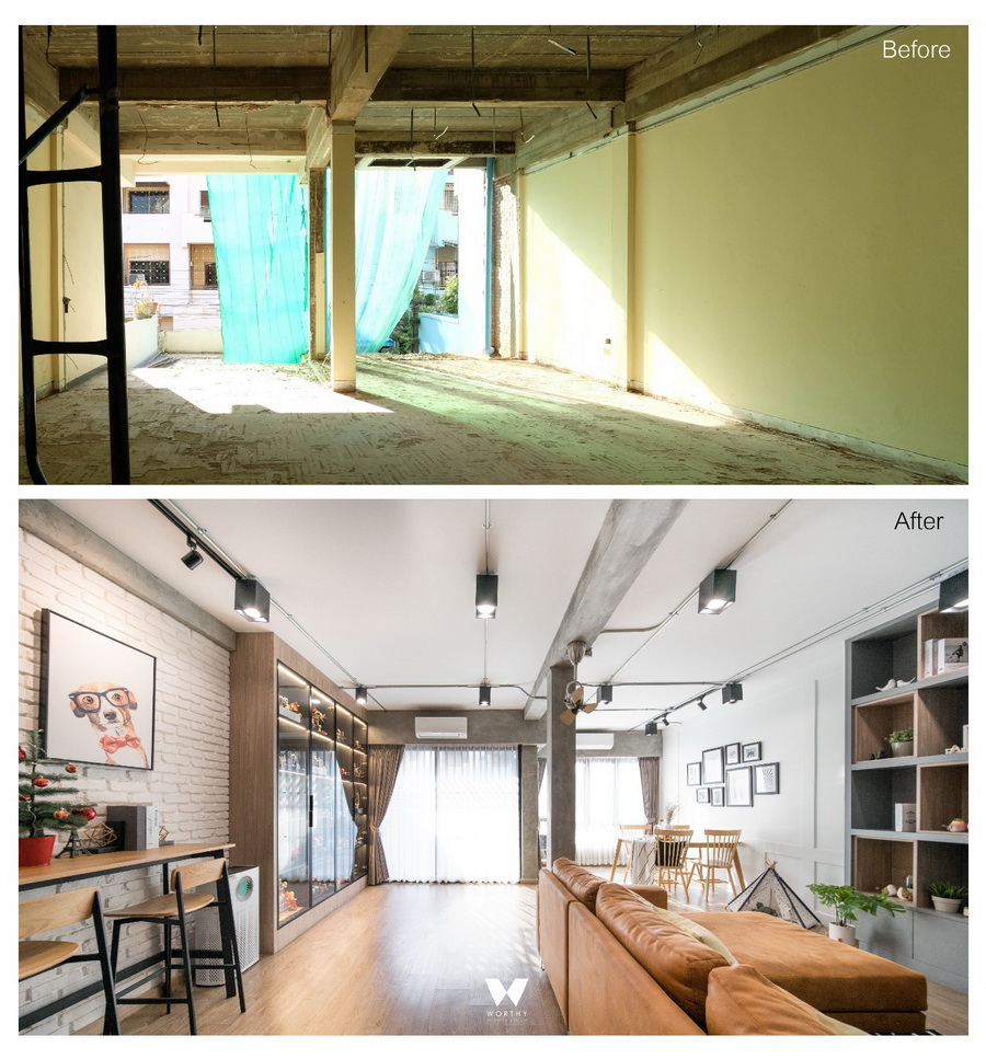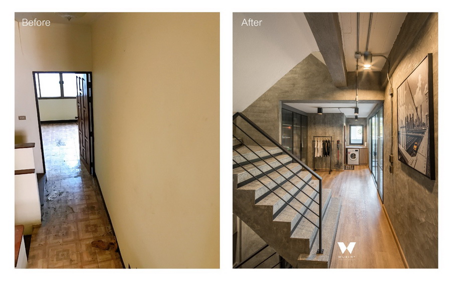 เมื่อผมได้เข้าไปสำรวจพื้นที่ก็พบว่าพื้นที่มีความน่าสนใจ….เนื่องจากผมเป็น interior design เราทำงานด้านนี้ ถ้าเราออกแบบจัดวางพื้นที่ดีๆน่าจะเปลี่ยนโฉมบ้านหลังนี้ให้น่าอยู่ได้ และเมื่อประเมินจากโจทย์ที่ตั้งไว้ตอนซื้อบ้านเราก็ลืมคิดถึงแนวทางนี้ไปเลย