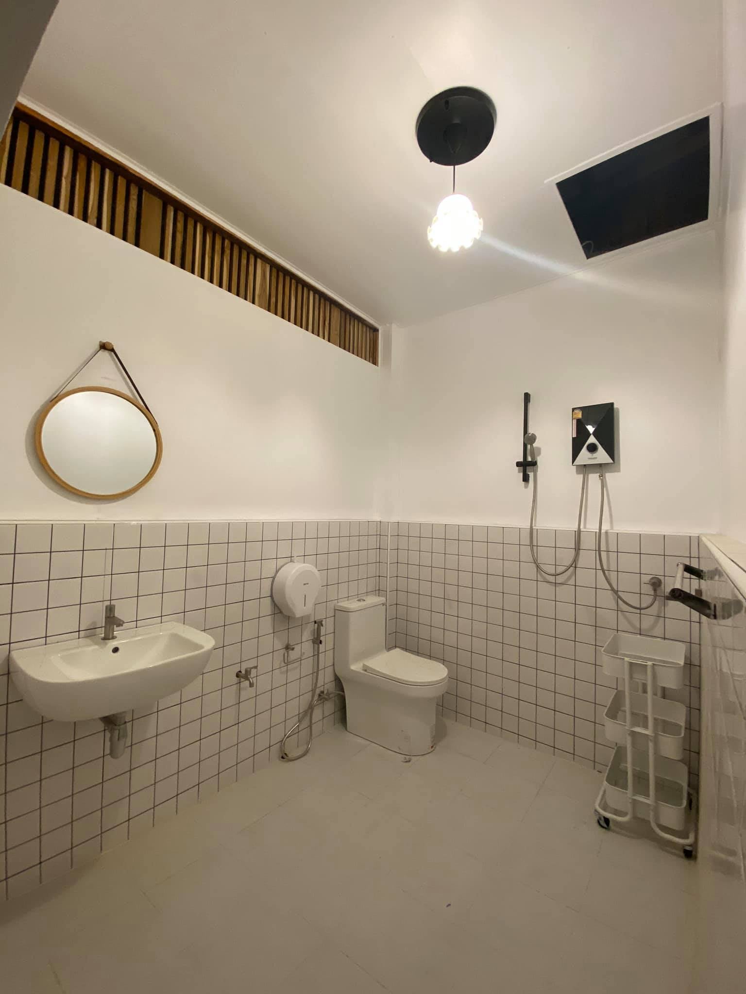 ห้องน้ำที่ผ่านการรีโนเวทแล้ว ภายในมีความทันสมัยสวยงาม สะท้อนผ่านองค์ประกอบที่เรียบง่ายสวยงาม ให้บรรยากาศที่ผ่อนคลายสุด ๆ