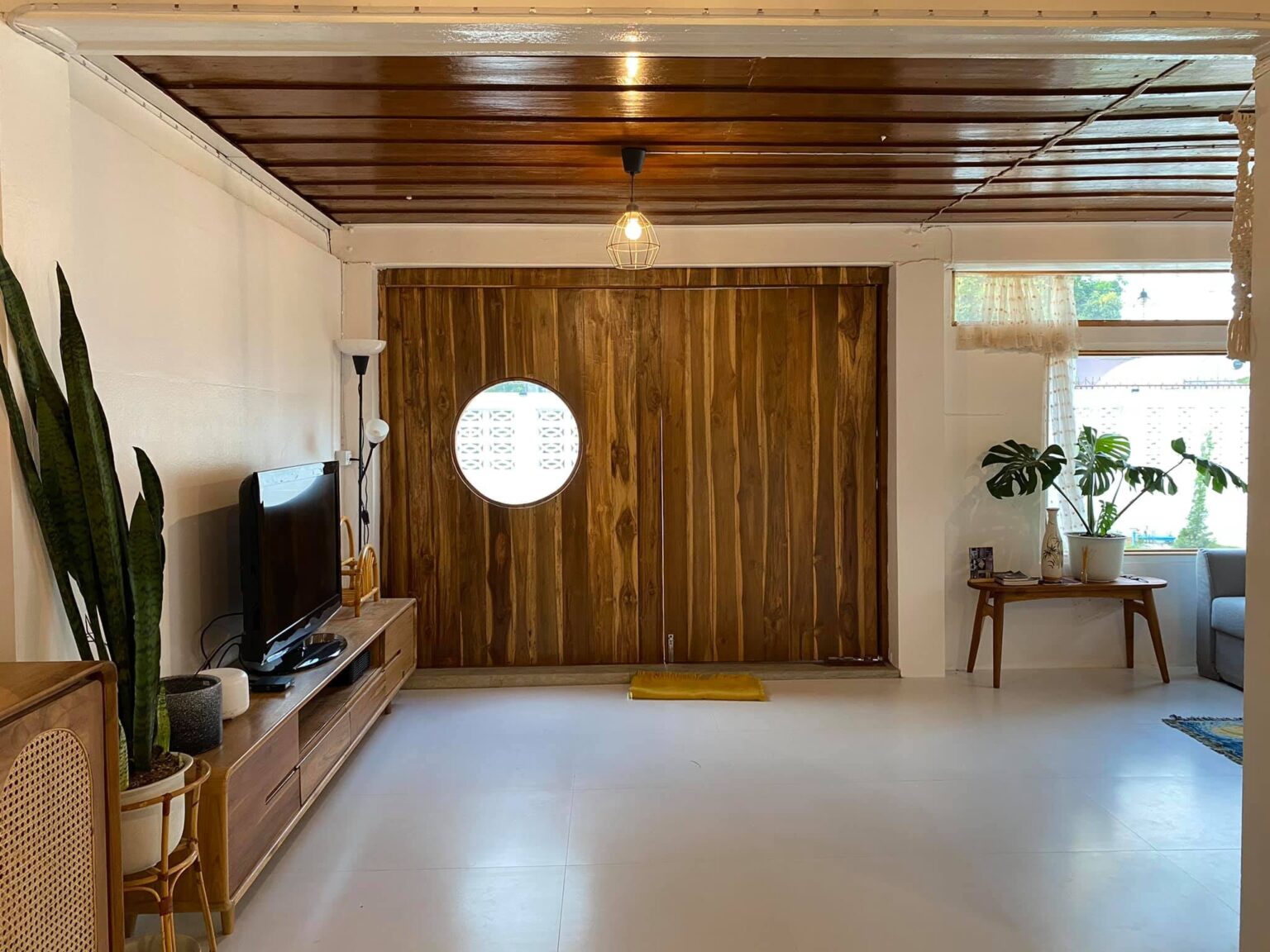 เมื่อเราผ่านประตูบ้านเข้ามา เราก็จะมาอยู่ในบริเวณห้องโถงหลักของบ้าน โดยความโดดเด่นจะอยู่ที่บริเวณส่วนของประตูที่เป็นบานประตูไม้ พร้อมการติดตั้งด้วยหน้าต่างทรงกลม