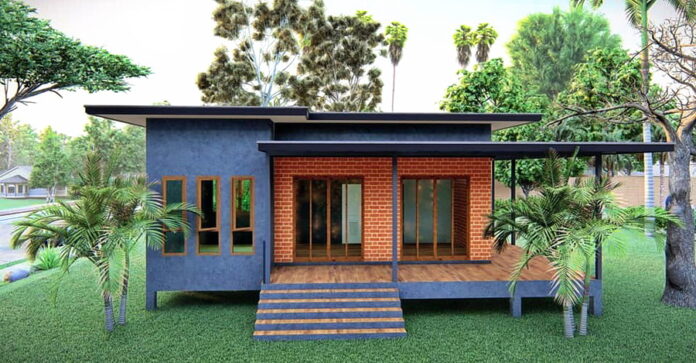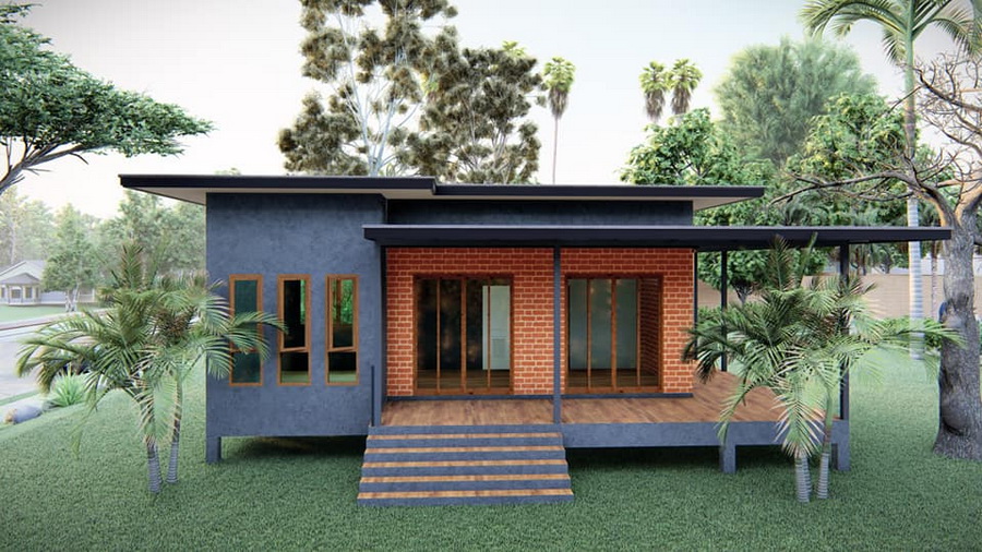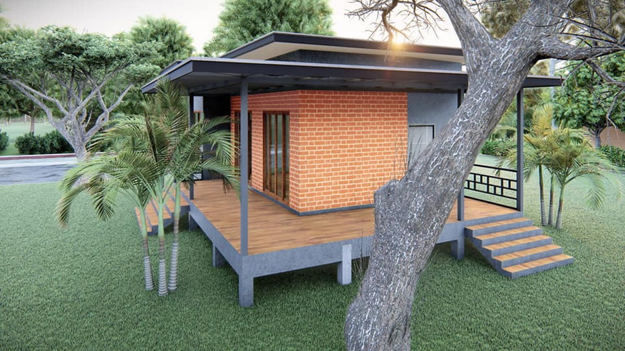 แบบบ้านยกพื้นสไตล์โมเดิร์นลอฟท์ตกแต่งธีมปูนเปลือย-ผนังอิฐ ดีไซน์ดิบเท่ 1 ห้องนอน 1 ห้องน้ำ
