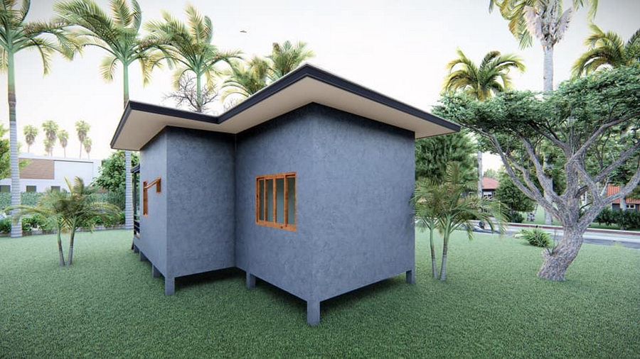 แบบบ้านยกพื้นสไตล์โมเดิร์นลอฟท์หลังนี้ประกอบไปด้วย 1 ห้องนอน 1 ห้องน้ำ 1 ห้องโถงนั่งเล่น 1 ห้องครัว พร้อมระเบียงกว้างนอกบ้าน พื้นที่ใช้สอยทั้งหมดประมาณ 90 ตารางเมตร