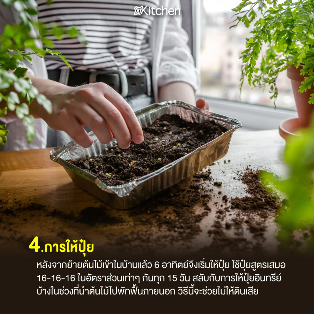 – ลดปุ๋ย ด้วยสภาพแสงในบ้านที่น้อยกว่าด้านนอก หากใส่ปุ๋ยเยอะเกินไป ทำให้ต้นไม้ไม่แข็งแรง