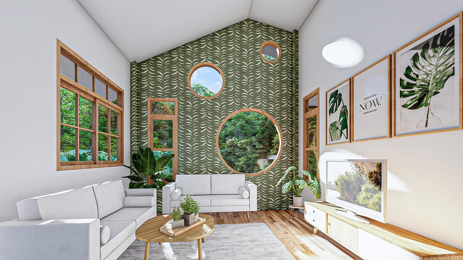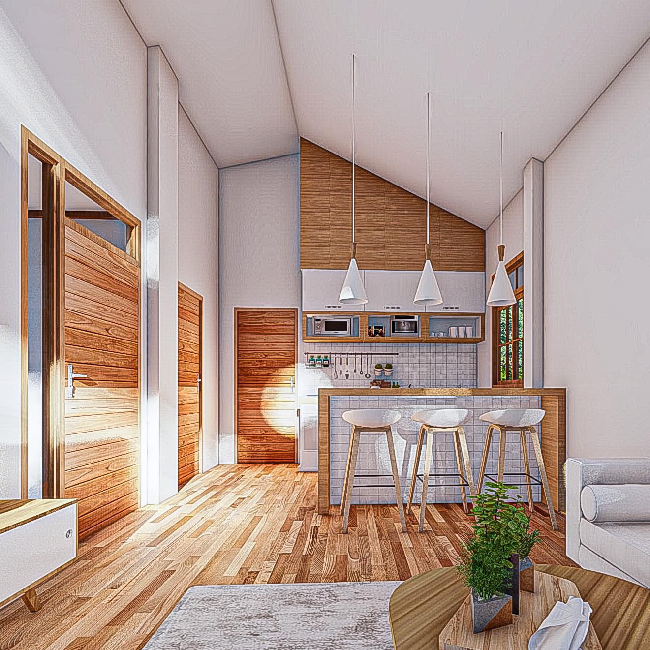 ภายในบ้านจะออกแบบห้องโถงในลักษณะเพดานยกสูง เพื่อชดเชยขนาดที่เล็กของบ้าน จึงช่วยให้บ้านดูปลอดโปร่งไม่อึดอัดนั่นเอง