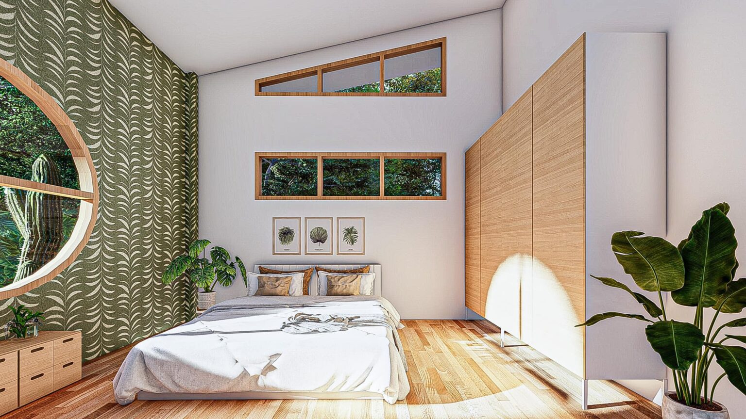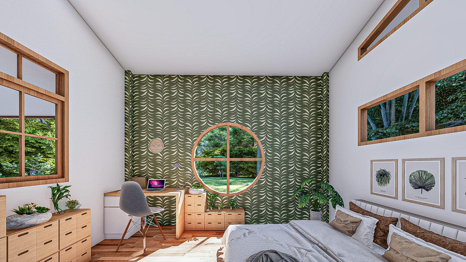 เช่นเดียวกันกับห้องนอน ที่ภายในห้องจะมีเพดานที่ยกสูง พร้อมกับมีหน้าต่างหลายมุมทั้งแบบสี่เหลี่ยมและแบบทรงกลม ล้วนแต่ช่วยให้ห้องโปร่งสบายสุด ๆ