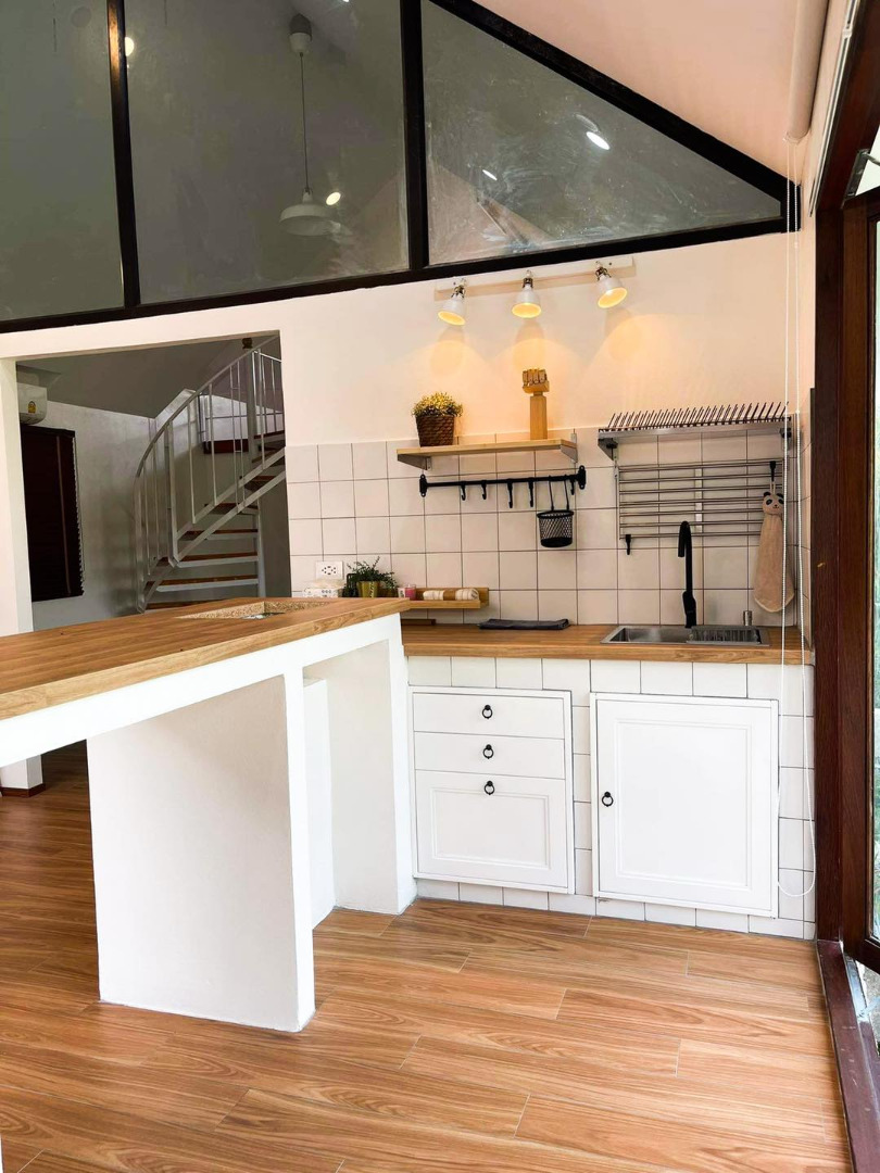 โดยแนวคิดของเราสองคนคือ โล่ง โปร่ง สูงเลยเลือกที่จะออกแบบบ้านทรงจั่ว ฝ้าเพดานสูง ส่วนที่สูงที่สุดของบ้านนี้คือ 5 เมตร เลือกที่จะตีฝ้าตามทรงหลังคา เพราะเคยไปเที่ยวพูลวิลล่าที่นึงแล้วเจอเพดานแบบนี้ ตั้งใจให้มีชั้นลอยเอาไว้ทำงาน และเก็บของสะสมต่างๆ และมีห้องเสื้อผ้าใหญ่ๆ เป็น room closet เพราะเมียผมเป็นสายแฟชั่น เอฟมาไม่เคยใส่ เลยต้องมีที่ไว้เยอะๆ งบประมาณการก่อสร้างหลังนี้ จากที่ดินเปล่า ใช้งบไป 700,000 บาทรวมทุกอย่างแล้ว พร้อมเข้าอยู่ เขียนแบบเอง คุมงานเอง ทุกอย่างในบ้านเลือกเองหมด ใช้งบอย่างประหยัดและเหมาะสม ช่างเหมาเป็นอย่างๆ ไม่ได้เหมารวม เพราะต้องเลือกช่าง เช่น ช่าง1 ทำปูนเก่ง ช่าง 2 ทำเหล็กเก่ง ช่าง3ทำเหล็กเก่ง ใช้ช่างทั้งหมด 4 ชุด กว่าจะดำเนินเสร็จสิ้น ระยะเวลา 5 เดือน ทำด้วยเงินสดทีละอย่าง เหนื่อยเอาเรื่องเลยครับ