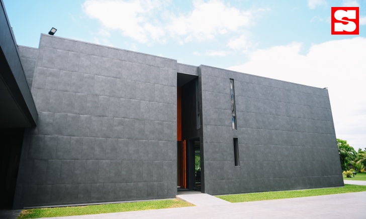 บ้านสีดำสไตล์โมเดิร์นขนาดใหญ่และดูแปลกตาด้วยการออกแบบที่ไม่เหมือนใคร ตั้งตระหง่านอยู่ริมทะเลสาบขนาดใหญ่ ภายในสนามกอล์ฟเอกชน นี่คือ “Sunny Ville” บ้านที่สุชัชวีร์มีส่วนร่วมในการออกแบบและก่อสร้างตั้งแต่เริ่มต้น