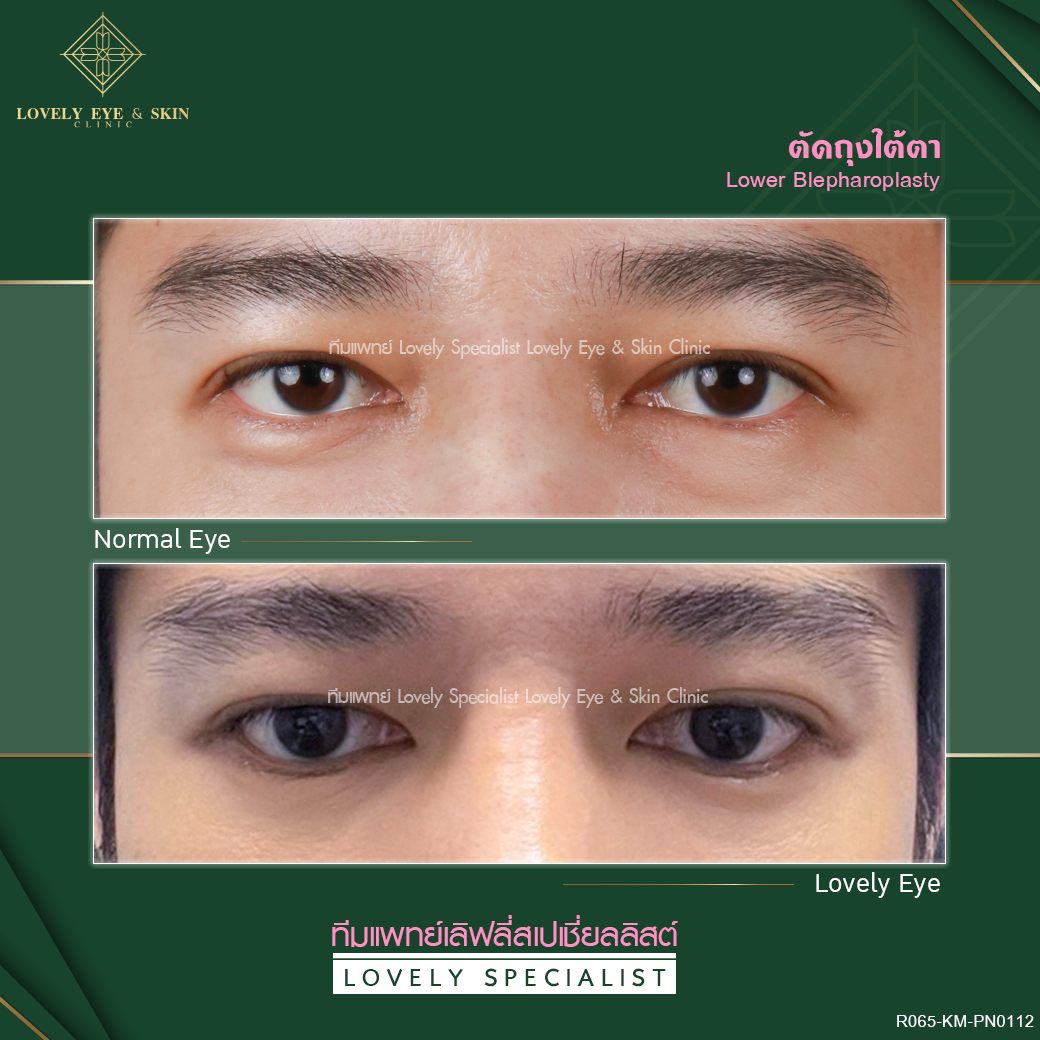 เหมาะกับ: คนที่มีถุงไขมันใต้ตา ร่องน้ำตาลึก มีผิวหนังส่วนเกินใต้ตา ผิวใต้ตาดูอิดโรย ดูโทรม และมีอายุ สามารถเลือกใช้เลเซอร์ตัดถุงใต้ตาแบบไร้แผล ซึ่งเป็นเทคนิคการตัดถุงไขมันส่วนเกินใต้ตาจากด้านในเปลือกตาด้วยไมโครเลเซอร์ หรือจะเป็นการทำ Thermage Eye Reborn คือการปล่อยคลื่น RF (radiofrequency) จากหัวยิงเล็กๆ ในความลึกที่พอเหมาะ ส่งผ่านไปยังผิวหนังบริเวณรอบดวงตา ทำให้เกิดการหดตัวของถุงไขมันใต้ตา คลายผิวหนังชั้นบนที่เป็นรอยย่นออก ช่วยให้ผิวหนังใต้ตาดูเรียบขึ้น รวมทั้งกระตุ้นการสร้างคอลลาเจนใต้ผิวหนังอีกด้วยผลลัพธ์หลังทำ: ผิวใต้ตาเรียบเนียน กระชับ ทำให้ดูอ่อนวัยลงอย่างเป็นธรรมชาติ รอยแผลเนียน ซ่อนใต้ขนตา ไม่เห็นรอยแผล ไขมันเกินใต้ตาไม่กลับมาซ้ำ และยังช่วยแก้ปัญหาร่องน้ำตาลึก ด้วยการตัดถุงใต้ตา และย้ายไขมันไปยังร่องน้ำตา ไม่มีอาการบวมช้ำ หลังทำไม่ต้องพักฟื้น