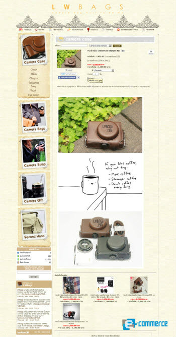 วิพาพร เปรียบเทียบว่า ตัวเว็บไซต์นั้นเปรียบเสมือนหน้าบ้านที่จัดขึ้นมาเพื่อความสวยงาม โดยลูกค้าสามารถเห็นทุกด้าน ทุกมุมของสินค้า รวมทั้งเห็นอิริยาบถในการใช้งาน การถือกระเป๋า ซึ่งทางร้านเองก็พยายามถ่ายภาพสินค้ากับนางแบบเพื่อให้สินค้าเฉพาะอย่างกระเป๋ากล้องสามารถสอดคล้องกับความเป็นแฟชั่น และการใช้งานในไลฟ์สไตล์ทั่วไปมากขึ้น ขณะที่ Facebook เองจะเน้นการทำโปรโมชั่นเป็นหลัก