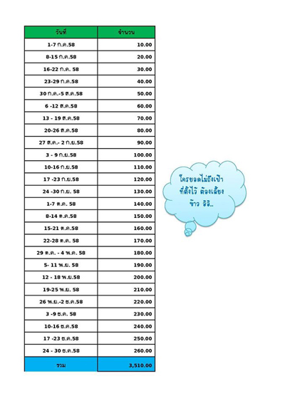 ตารางออมเงินของแฟนเพจในปี 2558
