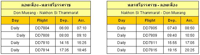ตารางบินของสายการบินนกแอร์ (ตั้งแต่ 1 ก.พ.2554 เป็นต้นไป)