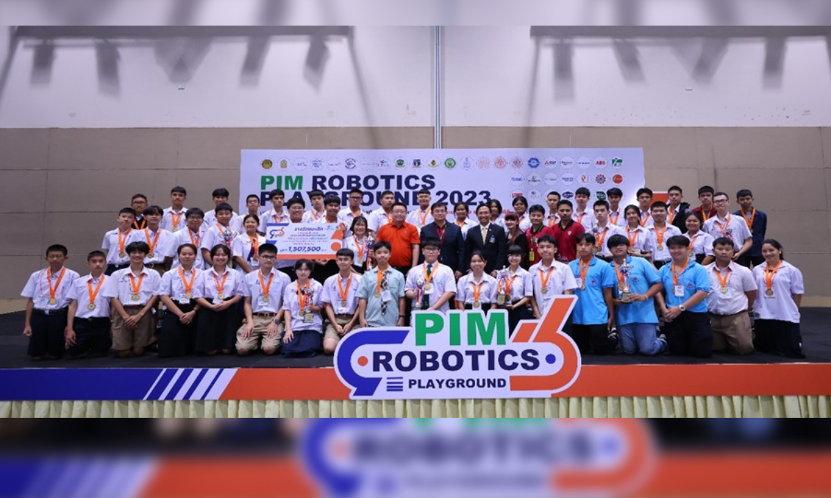 PIM Robotics Playground 2023 ภายใต้การผนึกกำลังสนับสนุนโดย 34 องค์กร ทั้งเครือข่ายสถานศึกษา หน่วยงานรัฐและเอกชน ซึ่งนับเป็น 2 วันแห่งความสำเร็จในการจุดประกายความคิด การสร้างการเรียนรู้ และพัฒนาฝีมือด้านหุ่นยนต์ให้กับเยาวชนรุ่นใหม่จากทั่วประเทศ มาปล่อยของกันอย่างเต็มที่ ในการคิด สร้างสรรค์ พัฒนาประดิษฐ์หุ่นยนต์กันอย่างคึกคัก สนุกสนาน ท่ามกลางเสียงเชียร์ที่ดังกระหึ่ม เมื่อวันที่ 17-18 มิถุนายน 2566 ณ อาคารหอประชุมปัญญาภิวัฒน์ สถาบันการจัดการปัญญาภิวัฒน์ ถ.แจ้งวัฒนะ และขอแสดงความยินดีกับสุดยอดเยาวชนไทย 3 คน จาก 12 ทีมที่ผ่านเข้ารอบสุดท้าย ได้รับรางวัลเรียนหลักสูตร Program of Artificial Intelligence International Class ณ Harbin Engineering University ได้แก่ ด.ช.วรเวทย์ นาคกล่อม ชั้นมัธยมศึกษาปีที่ 4 โรงเรียนโยธินบูรณะ, นายธนวัช หาละไชย ชั้นมัธยมศึกษาปีที่ 5 โรงเรียนเทพศิรินทร์ร่มเกล้า และ ด.ช.อติคุณ สิงหะพันธุ ชั้นมัธยมศึกษาปีที่ 3 โรงเรียนสาธิตสถาบันการจัดการปัญญาภิวัฒน์