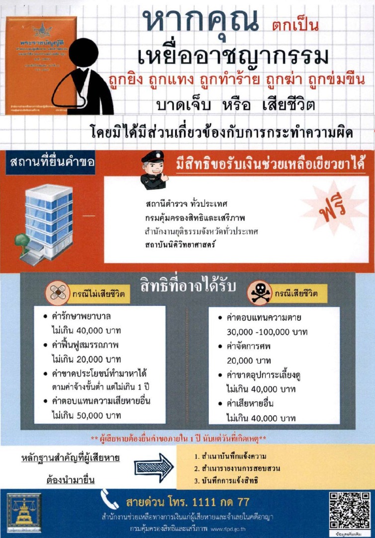 ข้อมูลจาก พ.ร.บ.ค่าตอบแทนแก่ผู้เสียหาย และค่าทดแทนและค่าใช้จ่ายแก่จำเลยในคดีอาอาญา พ.ศ.2544 (และที่แก้ไขเพิ่มเติม (ฉบับที่ 2) พ.ศ.2559) ระบุไว้ชัดเจนว่า สิทธิ์ที่ผู้เสียหายจะได้รับเข้าข่าย 2 ข้อ ดังนี้