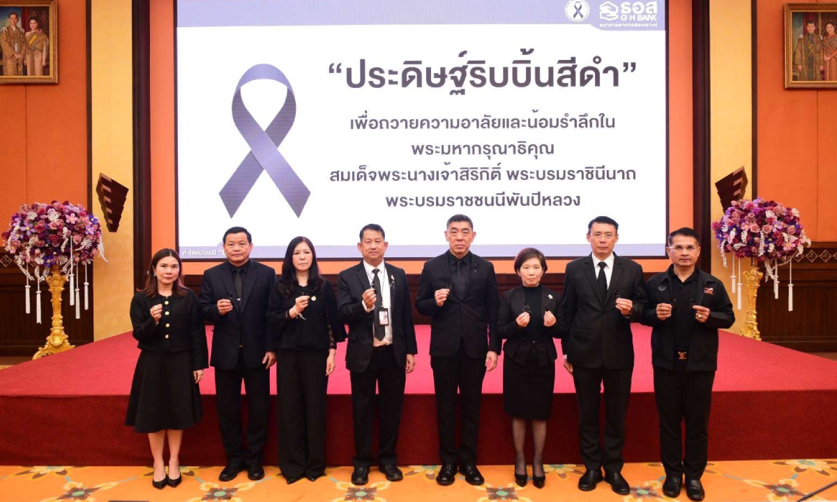 นายกมลภพ วีระพละ กรรมการผู้จัดการธนาคารอาคารสงเคราะห์ (ธอส.) พร้อมด้วยคณะผู้บริหารและพนักงานธนาคาร ร่วมกิจกรรมจิตอาสา “ประดิษฐ์ริบบิ้นสีดำ” แบบโบว์สีดำ และโบว์ไขว้สีดำ สำหรับใช้ติดเครื่องแต่งกายเพื่อเป็นสัญลักษณ์ของการแสดงความไว้อาลัยและน้อมรำลึกในพระมหากรุณาธิคุณของสมเด็จพระนางเจ้าสิริกิติ์ พระบรมราชินีนาถ พระบรมราชชนนีพันปีหลวง สะท้อนถึงการสำนึกในพระมหากรุณาธิคุณที่ทรงมีต่อประเทศชาติและพสกนิกรชาวไทย โดยริบบิ้นไว้อาลัยที่ร่วมกันประดิษฐ์ขึ้น ธนาคารได้นำไปมอบให้แก่ประชาชนที่เข้าร่วมกราบถวายบังคมพระบรมศพสมเด็จพระนางเจ้าสิริกิติ์ พระบรมราชินีนาถ พระบรมราชชนนีพันปีหลวง จำนวน 1,000 ชิ้น พร้อมด้วยน้ำดื่ม จำนวน 4,000 ขวด ณ บริเวณท้องสนามหลวง เมื่อวันที่ 19 พฤศจิกายน 2568