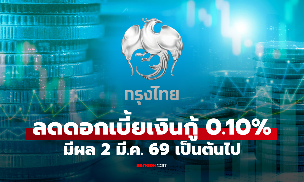 กรุงไทย ลดอัตราดอกเบี้ยเงินกู้ 0.10% ต่อปี มีผล 2 มี.ค. 69 เป็นต้นไป