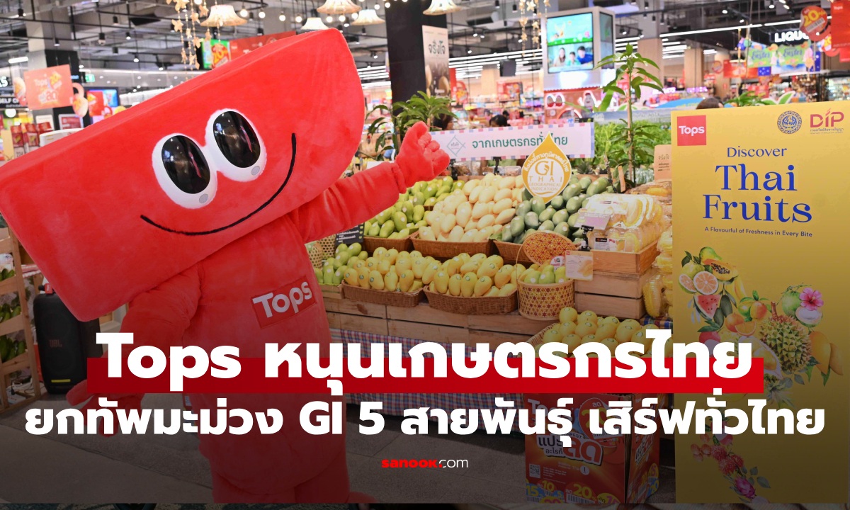 ท็อปส์ (Tops) ในเครือเซ็นทรัล รีเทล ตอกย้ำความเป็นผู้นำรีเทลที่รวบรวมสินค้า GI (สิ่งบ่งชี้ทางภูมิศาสตร์) มากที่สุดในไทย จับมือกรมทรัพย์สินทางปัญญา เปิดตัวแคมเปญ “Discover Thai Fruits 2026 – มะม่วง GI” ขนทัพมะม่วงคุณภาพพรีเมียม 5 สายพันธุ์ จากแหล่งผลิตชื่อดังจังหวัดฉะเชิงเทราและพิษณุโลก มาให้คนไทยได้ลิ้มรสความอร่อยตั้งแต่วันนี้ – 31 พฤษภาคม 2569