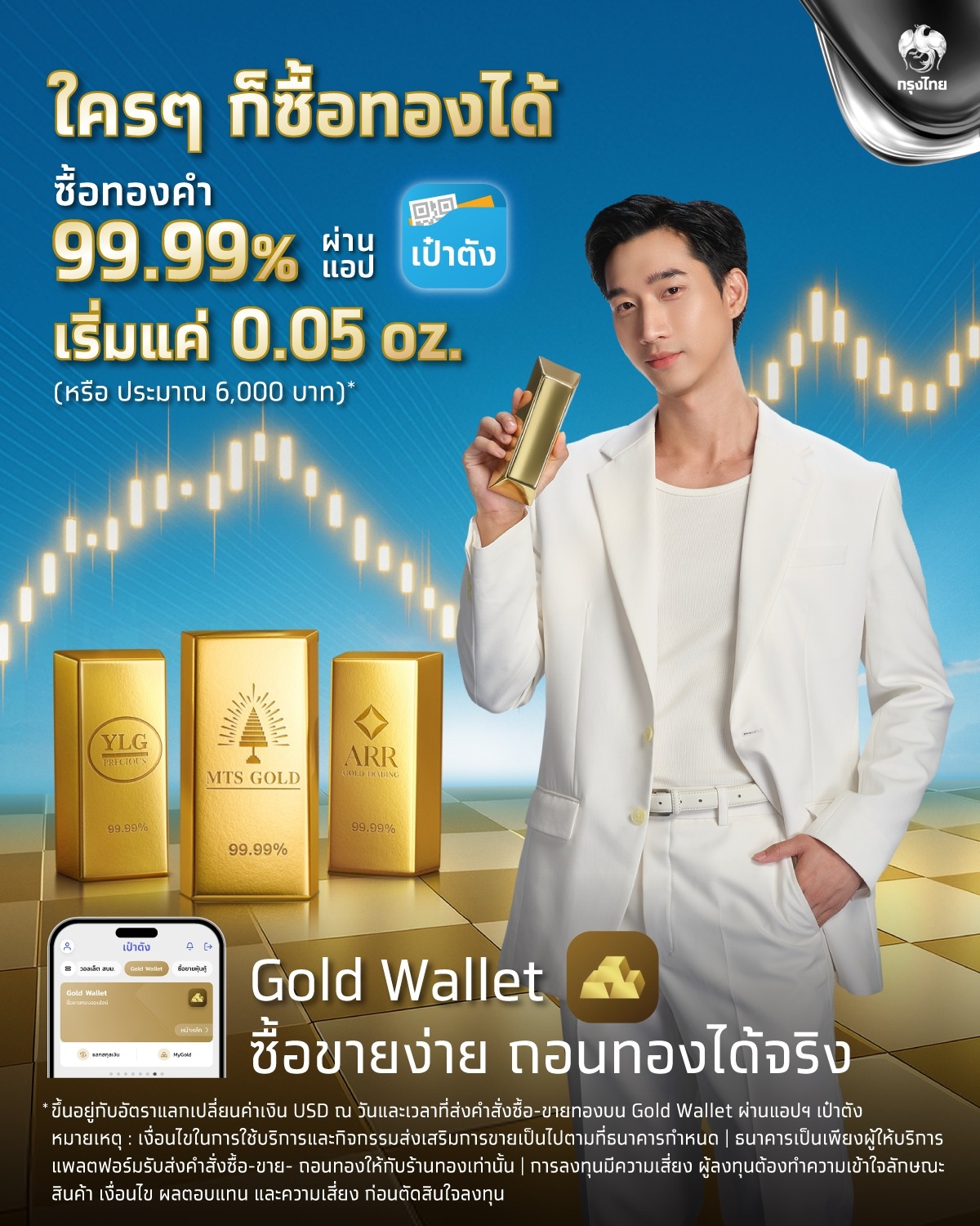 - Gold Wallet บนแอป "เป๋าตัง": เป็นการร่วมมือระหว่างธนาคารกรุงไทยและร้านทองชื่อดังอย่าง MTS Gold (แม่ทองสุก), YLG และ Aurora ข้อดีคือความมั่นใจในระบบของแอปเป๋าตังเอง และยังสามารถเทรดทองเป็นสกุลเงินดอลลาร์สหรัฐ (USD) เพื่อลดความเสี่ยงจากค่าเงินบาทผันผวนได้อีกด้วย