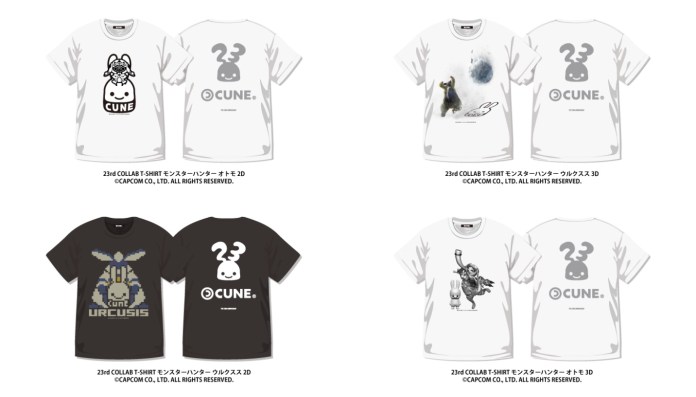 โดยเสื้อยืดลายกระต่ายสุดพิเศษมีทั้งหมด “23 ลาย” โดยจะมีเสื้อยืดจำนวน 20 ลายที่จะเป็นการออกแบบร่วมกันของมาสคอตกระต่ายจากแบรนด์ CUNE กับมาสคอตกระต่ายชื่อดังจากบริษัทอื่น ได้แก่ Crayon Shin-chan, Monster Hunter, Kuppy Ramune ฯลฯ ซึ่งกระต่ายเหล่านี้ล้วนแต่เป็นเหล่าตัวละครที่ไม่ค่อยมีความโดดเด่นเท่าไหร่นัก แต่พวกมันจะมาเป็นตัวละครเอกบนเสื้อยืดของ CUNE ในครั้งนี้