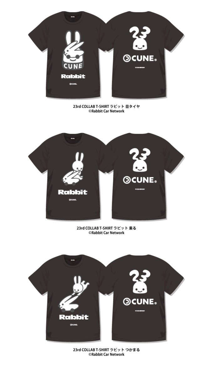 คอลเลคชั่นเสื้อยืดกระต่ายฉลองครบรอบ 23 ปี แบรนด์ CUNE มีวางจำหน่ายที่ร้าน CUNE ทุกสาขาในญี่ปุ่น สนนราคาอยู่ที่ 4,230 เยน (รวมภาษี) หรือประมาณ 1,300 บาท ใครมีเพื่อนพี่น้องอยู่ญี่ปุ่นตอนนี้ลองสอบถามกันดูได้ หรือไม่ก็คลิกเข้าไปดูรายละเอียดเพิ่มเติมทาง http://store.cune.jp/