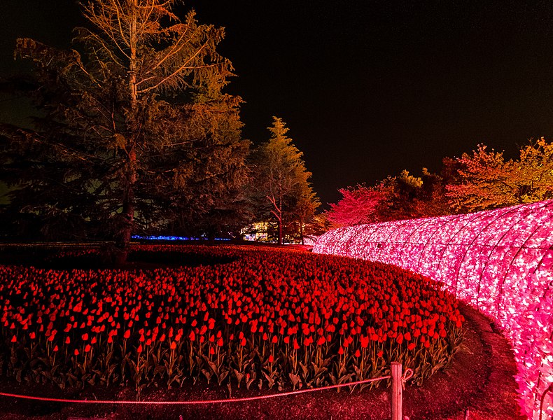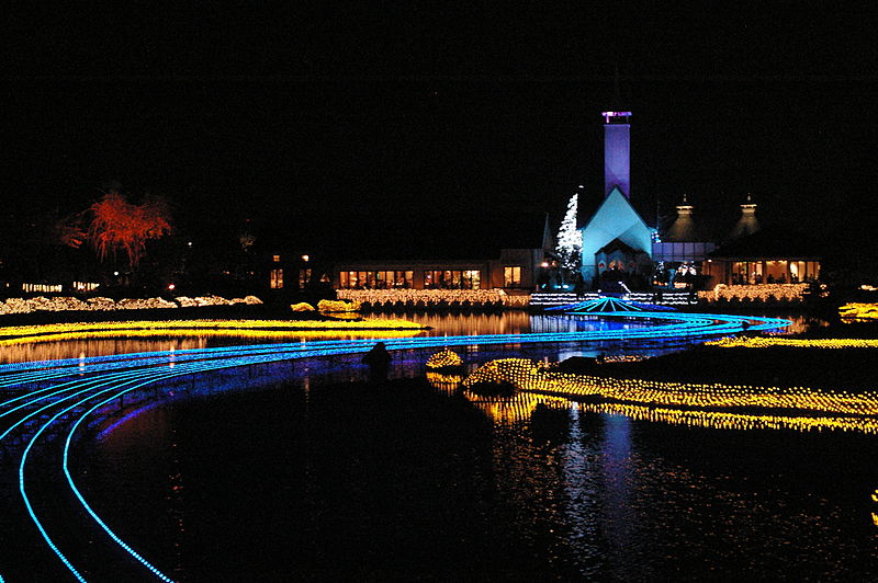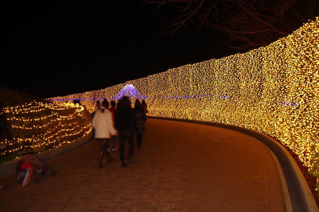 งานประดับไฟ Nabana no sato Winter Illumination จัดขึ้นในพื้นที่ของสวนดอกไม้ขนาดใหญ่ที่ชื่อว่า Nabana no sato ซึ่งเป็นส่วนหนึ่งของ Nagashima Resort ในจังหวัดมิเอะ ใกล้ๆ กับนาโงย่า เป็นงานจัดแสดงไฟที่หลายคนตั้งตารอ ซึ่งขอบอกเลยว่างานนี้ดีงามมากจริงๆ ในพื้นที่ของสวนดอกไม้ขนาดใหญ่จะเต็มไปด้วยดวงไฟกว่าล้านดวงที่แข่งกันส่องแสงยามค่ำคืน ดวงไฟมากมายเหล่านี้จะถูกประดับตกแต่งเป็นรูปต่างๆ ทั้งภูเขาไฟฟูจิ ต้นคริสต์มาส แม่น้ำ ทุ่งหญ้า รวมถึงยังมีการประดับไฟในน้ำ ให้นักท่องเที่ยวได้เดินชมกันเพลินๆ ท่ามกลามอากาศเย็นสบายในฤดูหนาว บรรยากาศโรแมนติกสุดๆ ไปเลย