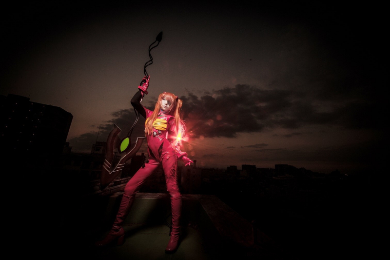 "อีวานเกเลียน คือหนึ่งในซีรีส์การ์ตูนเรื่องโปรดของฉัน แต่ชุด Plugsuit ของเรื่องนี้ทำเลียนแบบได้ยากจริงๆ สำหรับชุดนี้ฉันทำเกราะส่วนหน้าอกจาก Lion Board (โฟมชนิดพิเศษ ทำในญี่ปุ่น ไว้สำหรับการทำชุดคอสเพลย์โดยเฉพาะ) การยึดเข้ากับชุดที่ทำจากหนังเทียมเป็นอะไรที่ยากมากเลยค่ะ อันที่จริงฉันทำ Plugsuit ของ อายานามิ เรย์ (Ayanami Rei) ขึ้นมาด้วยนะ ใช้เวลาเป็นเดือนเลยค่ะ กว่าจะเสร็จ ช่วงที่กำลังขึ้นรูปชุดเนี่ย ฉันต้องใช้อุปกรณ์ตัดเป็นสิบชนิดเลย บวกกับอุปกรณ์ยิบย่อยอีกเพียบ ตอนนั้นอุปกรณ์เกลื่อนไปทั้งบ้านเลยค่ะ (หัวเราะ)"