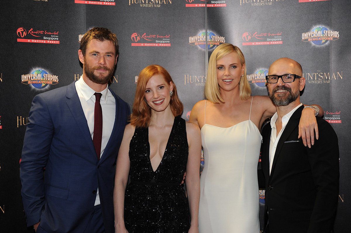 คริส เฮมส์เวิร์ธ, ชาร์ลิซ เธอรอน และเจสสิก้า แชสเทน นำทีมเปิดตัวภาพยนตร์ The Huntsman: Winter's War ที่ยูนิเวอร์แซล สตูดิโอ สิงคโปร์