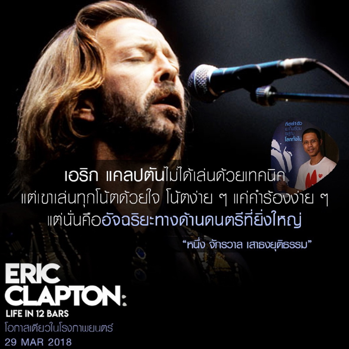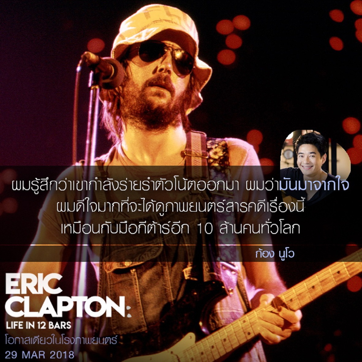 ภาพยนตร์ Eric Clapton: Life in 12 Bars เป็นภาพยนตร์ที่เผยถึงเบื้องหลังชีวิตจริงของศิลปินระดับโลกอย่าง อีริก แคลปตัน เจ้าของรางวัลแกรมมี่กว่า 18 รางวัล และเป็นคนเริ่มให้ดนตรีบลูส์เป็นที่รู้จักมากขึ้น!