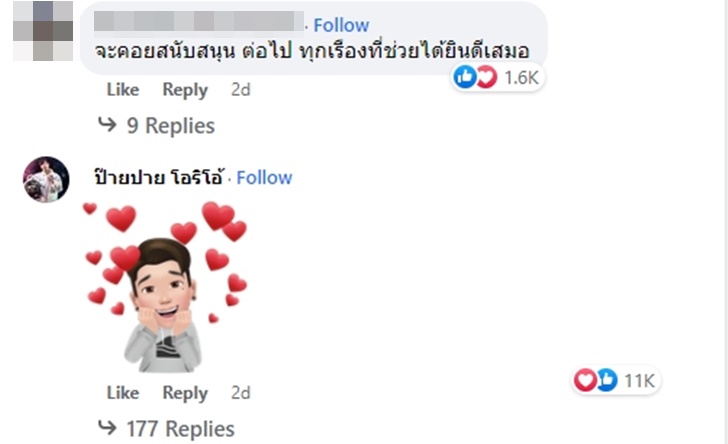 ซึ่งหลังจากที่ลงข้อความไป ก็มีแฟนๆ เข้ามาคอมเมนต์กันเป็นจำนวนมาก พร้อมส่งข้อความกำลังใจให้กับทั้งสอง มากกว่า 6 พันข้อความ (นับข้อความทั้งหมดถึงวันที่ 16 กุมภาพันธ์) รวมถึงตัวปายด้วย