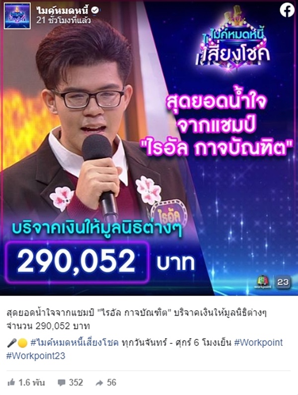 ไมค์หมดหนี้ เผย "ไรอัล" แชมป์ 182 สมัย บริจาคเงินรางวัลนับล้านช่วยคนมีฝัน 160 คน