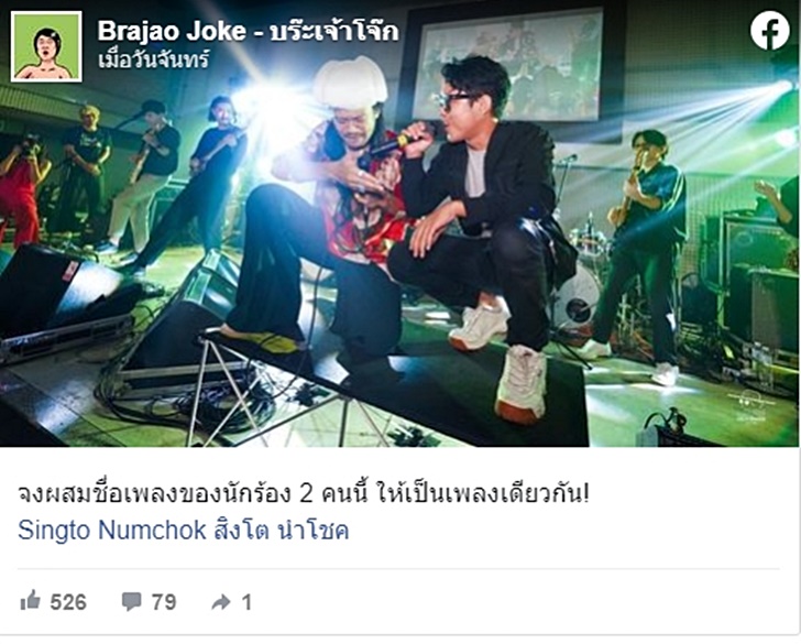 โดยสิงโต ได้โพสต์ข้อความว่า "จงผสมชื่อเพลงของนักร้อง 2 คนนี้ ให้เป็นเพลงเดียวกัน!" ประกอบภาพของเขาและสิงโต นำโชค ที่กำลังทำงานด้วยกัน จนงานนี้แฟนๆ เข้ามาแสดงความเห็น กันแบบล้นหลามทันทีที่สิงโตโพสต์ลงไป