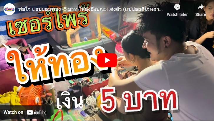 โดยในคลิปที่มากับแคปชั่นว่า "พ่อโจ แอบมอบทอง -5 บาท ให้อุ๋งอิ๋งขณะเเต่งตัว (เเบ้น้อยดีใจหลาย น้ำตาสิไหลอีกเเล้ว)" ซึ่งการเซอร์ไพรส์ครั้งนี้นอกจากสร้อยทองที่นำมาเซอร์ไพรส์แล้ว ยังมีเงิน 5 บาทที่บรรจุอยู่ในกล่องทองด้วย
