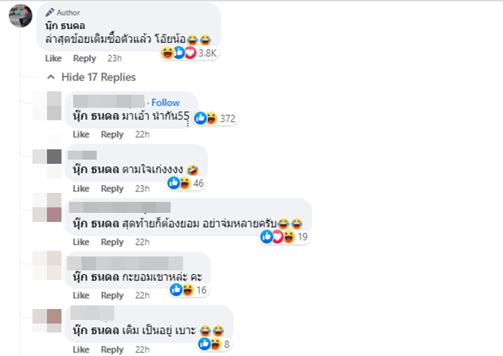 และหลังจากโพสต์สเตตัส นุ๊กก็โพสต์ต่ออีกว่า "ล่าสุดข้อยเติมซื้อตัวแล้ว โอ๊ยน้อ" ที่มีแฟนๆ เข้ามากดแสดงความรู้สึกอย่างล้นหลามและคอมเมนต์ให้กำลังใจให้นุ๊กชนะการแข่งเกม