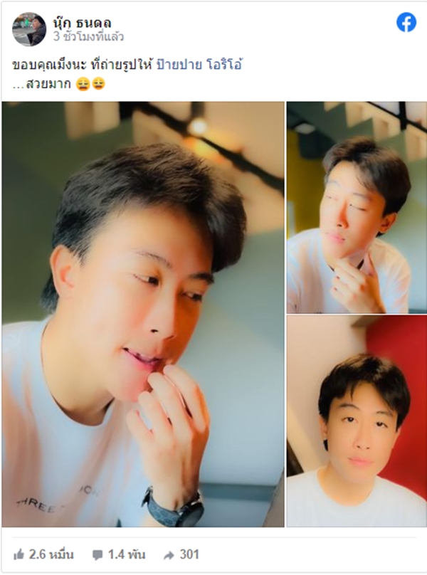 โดยนุ๊ก ธนดล ได้โพสต์ภาพที่ป๊ายปาย โอริโอ้ ถ่ายให้ในโทนสีที่แปลกตา พร้อมแคปชั่นว่า "ขอบคุณมึงนะ ที่ถ่ายรูปให้ ป๊ายปาย โอริโอ้…สวยมาก" จนแฟนๆ เข้ามาแซวกันอย่างล้นหลาม ถึงความสนิทของทั้งคู่