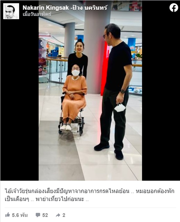 ซึ่งหลังจากเหตุการณ์ดังกล่าว ป้าง-นครินทร์ กิ่งศักดิ์ พ่อของขมิ้น ก็ลงรูปครอบครัว พร้อมกับแคปชั่นว่า "ไอ้เจ้าวัยรุ่นกล่องเสียงมีปัญหาจากอาการกรดไหลย้อน .. หมอบอกต้องพักเป็นเดือนๆ .. พาย่าเที่ยวไปก่อนนะ" และมีหลายๆ คนมาส่งกำลังใจ