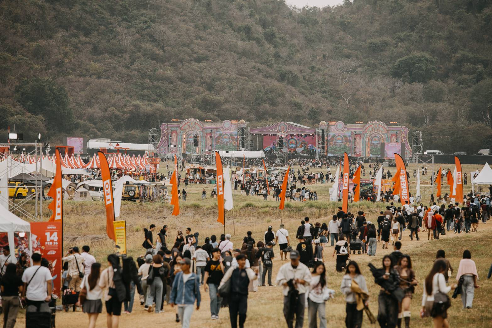 ความสนุกของงาน ริมผา 14 กุมภา กูเลิฟมึงว่ะ เริ่มต้นในช่วงบ่ายที่มีผู้ชมค่อยๆ เข้ามาจับจองเข้าชม ก่อนที่ความสนุกจะเริ่มขึ้นพร้อมกันเวลา 16.00 น. เพราะนอกจากคอนเสิร์ตแล้ว ปีนี้งานริมผาก็มากับกิจกรรมมากมายทั้ง โซนกิจกรรม อาหาร แฟชั่น งานคราฟต์ กิจกรรม Wellness สุดฮีลใจ และโซน Eco สำหรับอนุรักษ์ พร้อมลานแคมป์ปิ้ง ภายใต้บรรยากาศขุนเขา 420 ไร่ พร้อมฉากหลัง วิวภูเขา 360 องศา ของ WILD CALLING FARM PARK เขาใหญ่ ปากช่อง จ.นครราชสีมา