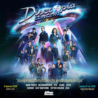 ATIMESHOWBIZ (เอไทม์โชว์บิส) ผู้จัดคอนเสิร์ตระดับแนวหน้าของเมืองไทย เตรียมเสิร์ฟคอนเสิร์ต เอาใจวัยรุ่นยุค 2000’s กับการรวมศิลปินดังยุคแผ่นดิสก์ที่คิดถึง ใน “DISCTOPIA CONCERT” (ดิสก์โธเปีย คอนเสิร์ต)“ปรากฏการณ์รวมศิลปินโคตรฮิต ยุคแผ่นดิสก์ถล่มเมือง!” ย้อนกลับทุกความทรงจำกับเพลงดังที่วัยเราร้องตามได้