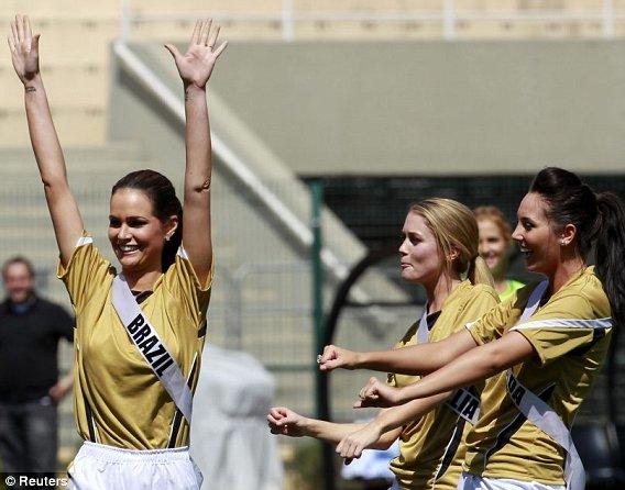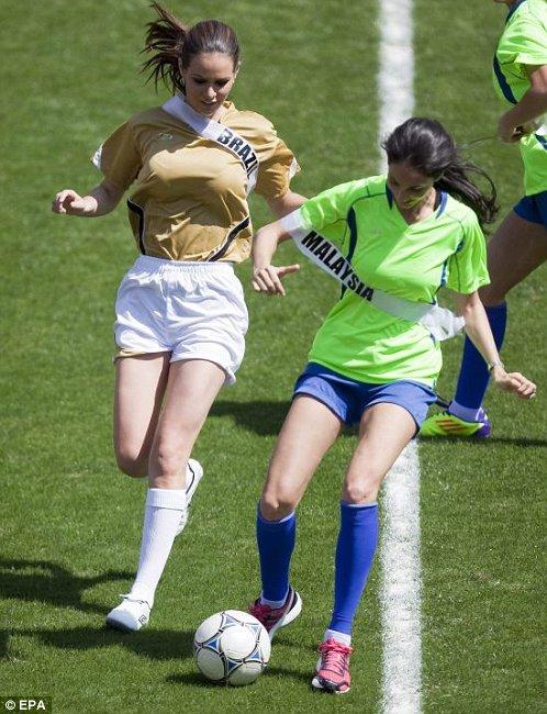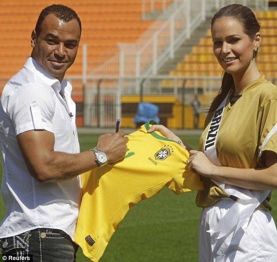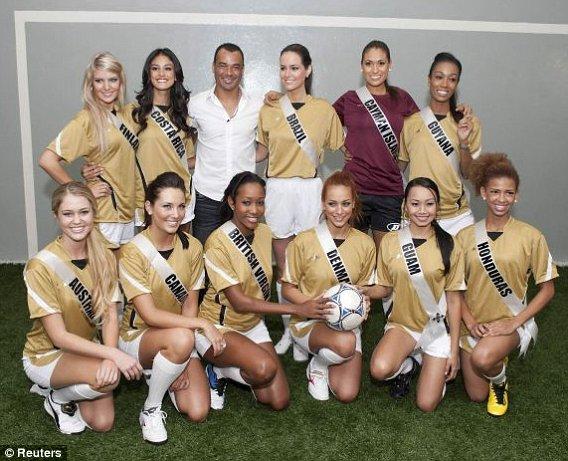 ฟุตบอลนัดพิเศษมิสยูนิเวิร์สหนุ่มๆเห็นภาพนี้แล้วคงอิจฉา คาฟู อดีตกองหลังกัปตันทีมชาติบราซิล ชุดแชมป์โลกปี2002 ที่มารับบทบาทเป็นพี่เลี้ยงให้กับมิสยูนิเวิร์ส 2011 ลงเตะบอลนัดพิเศษ