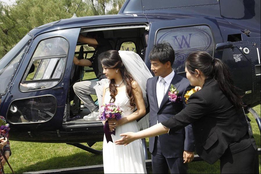 คู่รักชาวจีนจัดงานแต่งงาน บนเฮลิคอปเตอร์สำนักข่าวต่างประเทศรายงานว่า คู่รักชาวจีนจัดงานแต่งงานกันบนเฮลิคอปเตอร์ ซึ่งมีค่าใช้จ่ายสูงถึง 30,000หยวน (150,000บาท)