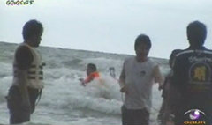 เจ้าหน้าที่กู้ภัยสมาคมสว่างกตัญญูธรรมสถาน จันทบุรี ระดมกำลังออกช่วยเหลือและค้นหานักท่องเที่ยวบริเวณชายหาดเจ้าหลาว ต.คลองขุด อ.ท่าใหม่ จ.จันทบุรี หลังเกิดเหตุนักท่องเที่ยวฝ่าฝืนป้ายสัญญาณและธงเตือนภัย ลงเล่นน้ำทะเลถูกคลื่นสูงกว่า 3 เมตร ซัดออกนอกชายฝั่งจมหายไป โดยเจ้าหน้าที่กู้ภัยใช้เชือกผูกติดกับตัวเดินปูพรมออกค้นหา แต่เป็นไปอย่างยากลำบาก เนื่องจากมีคลื่นทะเลซัดเข้าหาฝั่งอย่างรุนแรง จนสามารถช่วยเหลือนายปิยะ เกียรติหิรัญ อายุ 36 ปี ส่งโรงพยาบาล ก่อนจะพบศพ ด.ญ.อาทิตยา พิมพาลัย อายุ 13 ปี และ ด.ช.พิพัฒน์ เกียรติหิรัญ อายุ 11 ปี ถูกคลื่นซัดห่างจากชายฝั่งประมาณ 80 เมตร