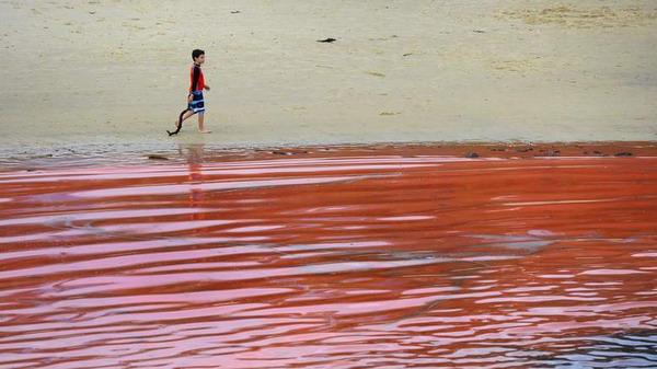 ทะเลสีแดง! ปรากฎการณ์หาดูยากที่ออสเตรเลีย