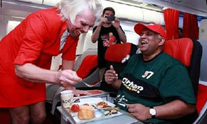 เซอร์ริชาร์ด แบรนสัน นักธุรกิจจากแดนผู้ดี ผู้ก่อตั้งกลุ่มธุรกิจเวอร์จิ้น กรุ๊ป ทำตามสัญญาจากการแพ้พนัน ต้องสวมชุดพนักงานต้อนรับบนสายการบินแอร์เอเชียเสิร์ฟอาหารให้กับ โทนี่ เฟอร์นันเดซ ผู้บริหารระดับสูงของแอร์เอเชีย และเจ้าของสโมสรควีนส์ ปาร์ค เรนเจอร์ส ในลีกอังกฤษ ในไฟลท์วันที่ 12 พฤษภาคมนี้