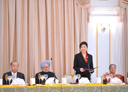 นายกฯยิ่งลักษณ์ต้อนรับนายกอินเดีย-ภริยา