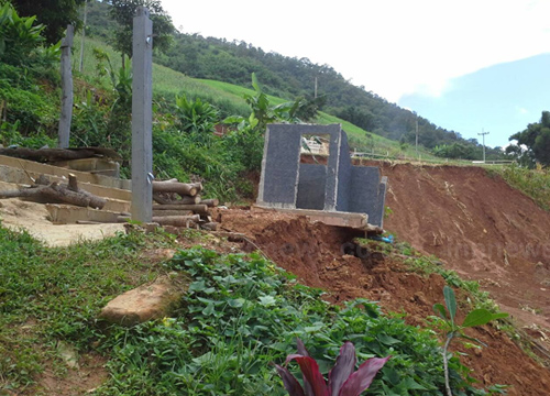 ฝนที่ตกหนัก ทำแม่น้ำโขงเพิ่มระดับและดินริมแม่น้ำโขงอุ้มน้ำไว้เป็นจำนวนมาก ทำให้ดินตลิ่งแม่น้ำโขง ริมถนนสายเชียงของ – เวียงแก่น บ้านห้วยเอียน หมู่ 6 ตำบลหล่ายงาว อำเภอเวียงแก่น จังหวัดเชียงราย พังเสียหายเป็นเหวลึกลงไปในแม่น้ำโขงกว่า 20 เมตร ซึ่งพบว่า ดินริมตลิ่งพังเสียหายเป็นวงกว้างจากตลิ่งมาถึงริมถนนเข้ามาประมาณ 50 เมตร กว้างเกือบ 100 เมตร จนทำให้บ้านของ นายขันแก้ว วงศ์ไทย เลขที่ 97 หมู่ 6 ตำบลหล่ายงาว 1 หลัง พังหายไปในแม่น้ำโขง และร่วงไปโดนกระชังปลาที่อยู่ด้านล่างในแม่น้ำโขงเสียหาย ทำให้ปลาทับทิม น้ำหนักตัว 1.5 กิโลกรัมถึง 1.8 กิโลกรัม กว่า 3,000 ตัว ที่รอขายหลุดลงแม่น้ำโขง นอกจากนี้และยังทำให้ผิวถนนสายดังกล่าว ฝั่งขาเข้าอำเภอเวียงแก่น พังเสียหายไปด้วยจนต้องปิดการจราจร 1 ช่องทาง