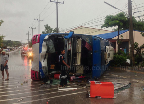 รถทัวร์ กรุงเทพฯ - สตูล แหกโค้งพลิกคว่ำพัทลุงเจ็บ10ราย